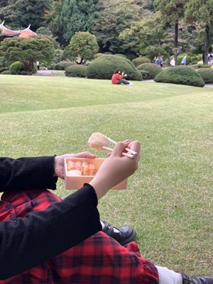 東京駅で念願の縁側寿司を片手にピクニックに行きました。