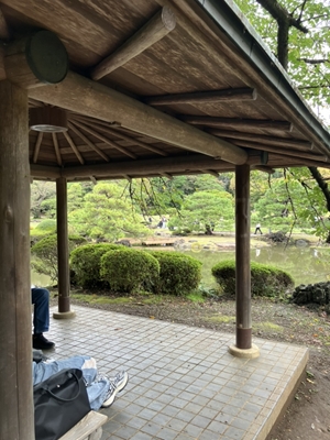 園内にある東屋は、私の好きな「言の葉の庭」という作品の舞台となった場所で
