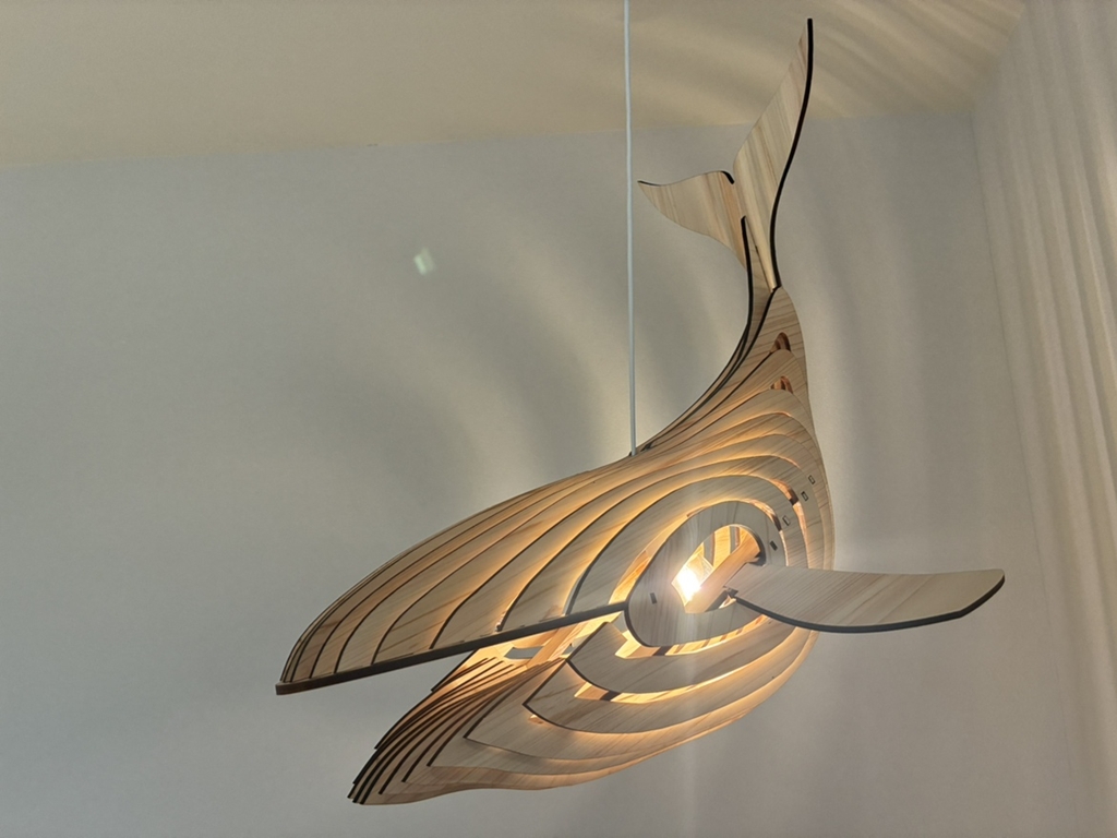 木製のクジラ照明