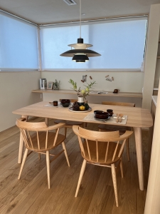 ダイニングテーブルとチェアを納品させていただきました! Ritダイニングテーブル 厚い板をテーブルの...